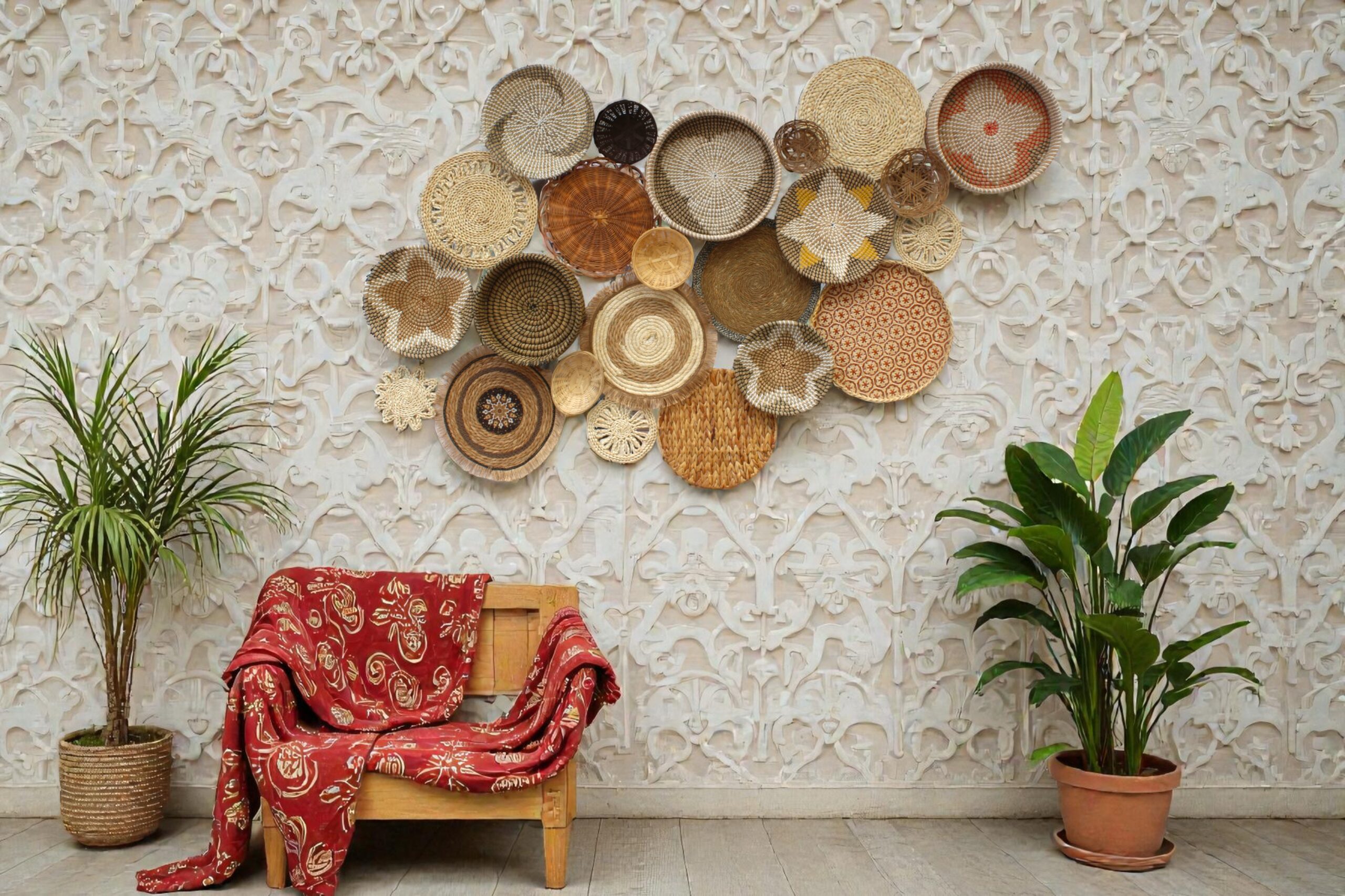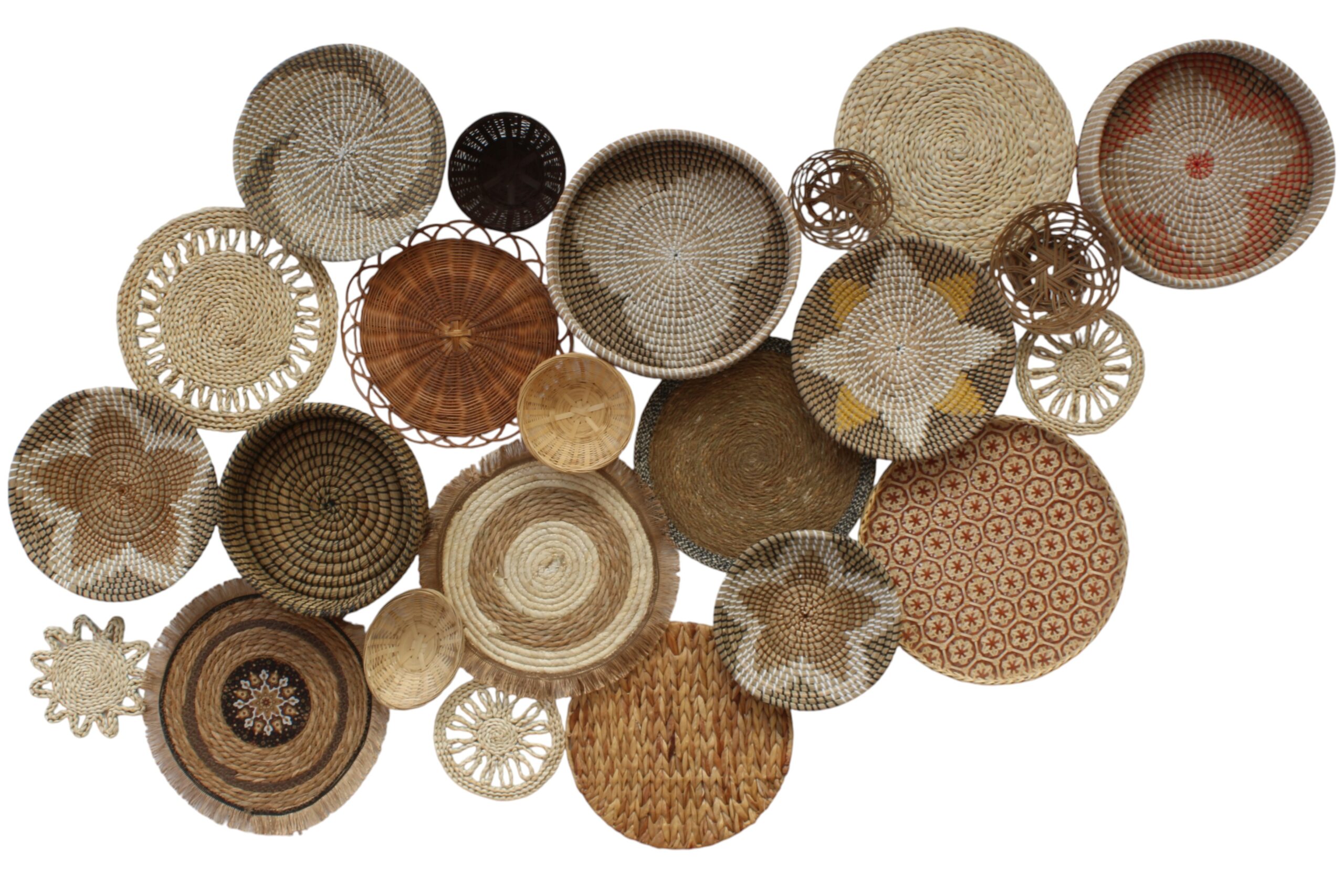 El yapımı sepetlerden oluşan bir duvar panosudur. Ürün, doğal malzemeler ( hasır, rattan vb.) kullanılarak üretilmiş farklı boyut ve desenlerdeki sepetlerin bir araya getirilmesiyle oluşturulmuştur. Modern ve bohem tarzlarda ev dekorasyonu için oldukça şık ve dikkat çekici bir parçadır. Set 21 parçadan oluşmaktadır. Ürünler ayrı ayrı gelmekte olup istediğiniz gibi dizayn edebilirisniz.