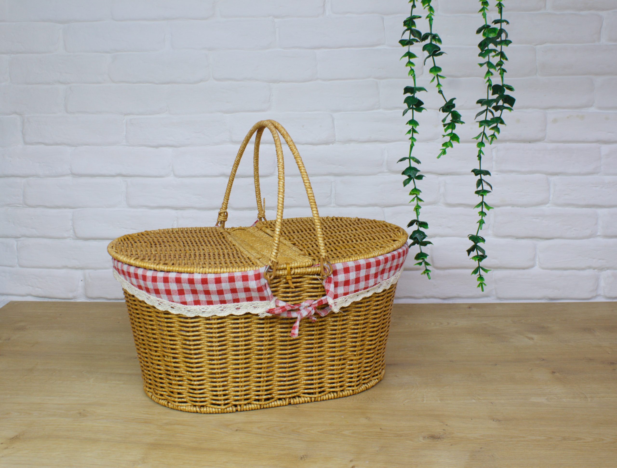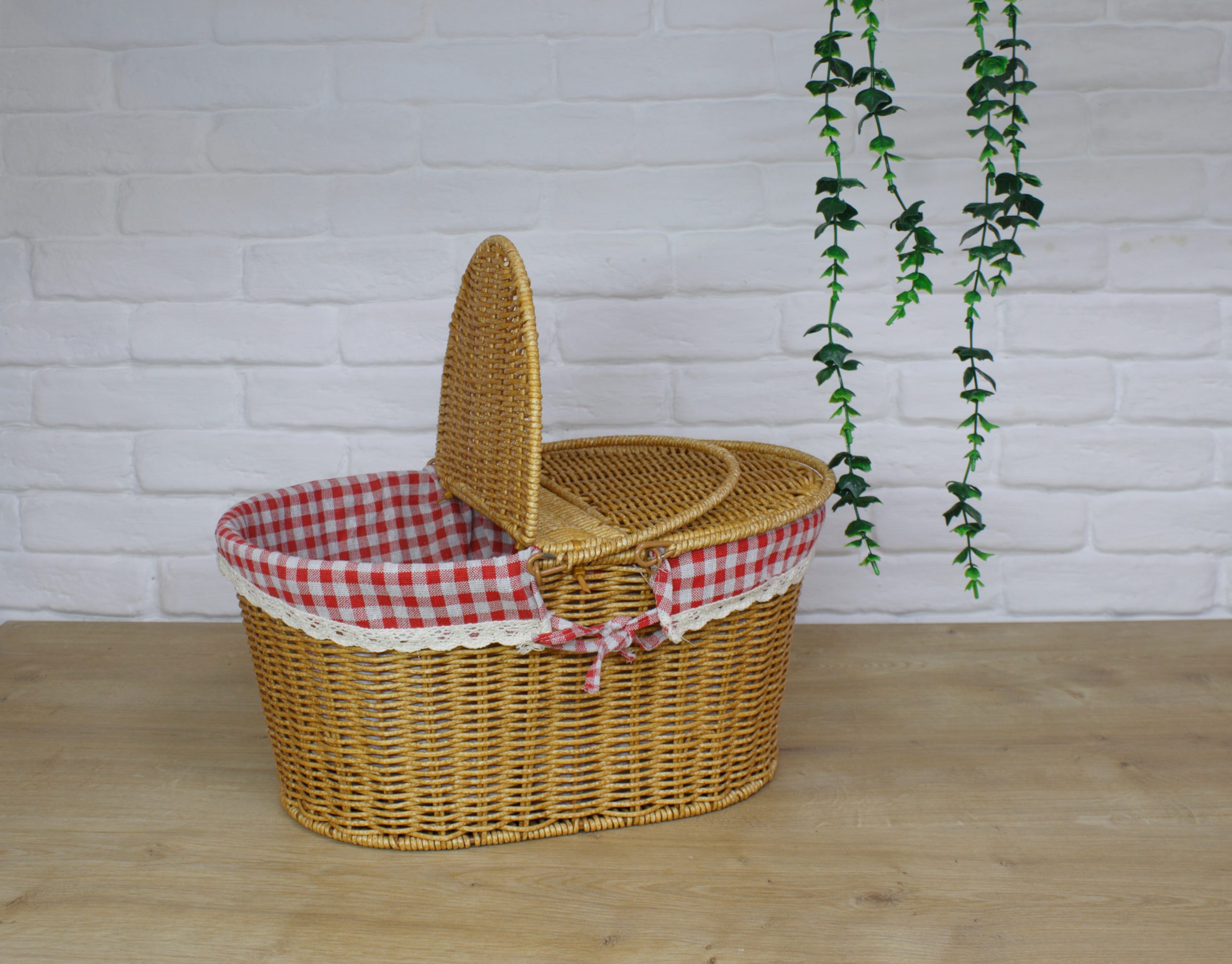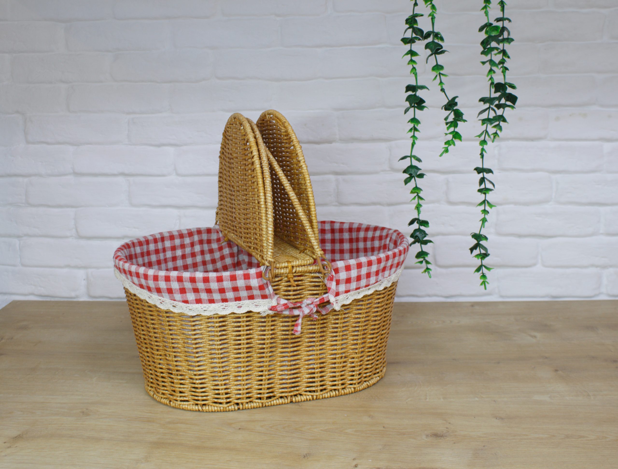 Rattan malzemesinin en önemli özelliği dayanıklı ve esnek olmasıdır Tasarım : İki kapaklı ve iki kulplu klasik piknik sepeti İç Astar : Kırmızı-beyaz ekose desende kumaş astar bulunur.