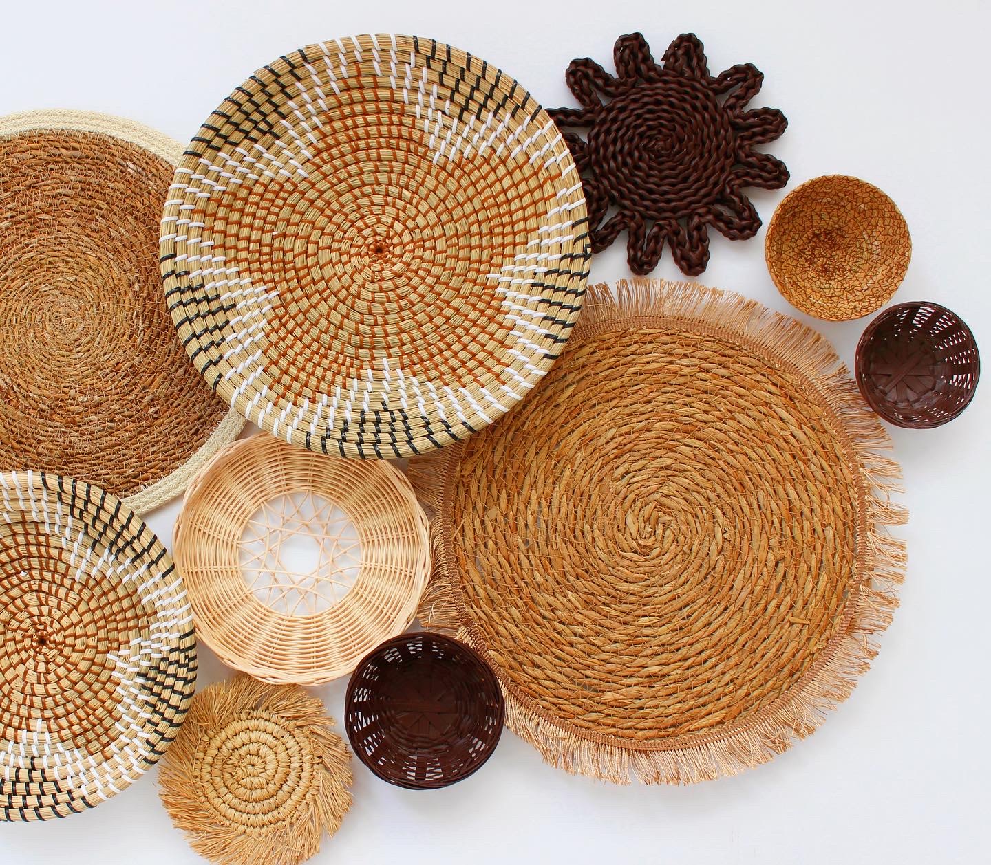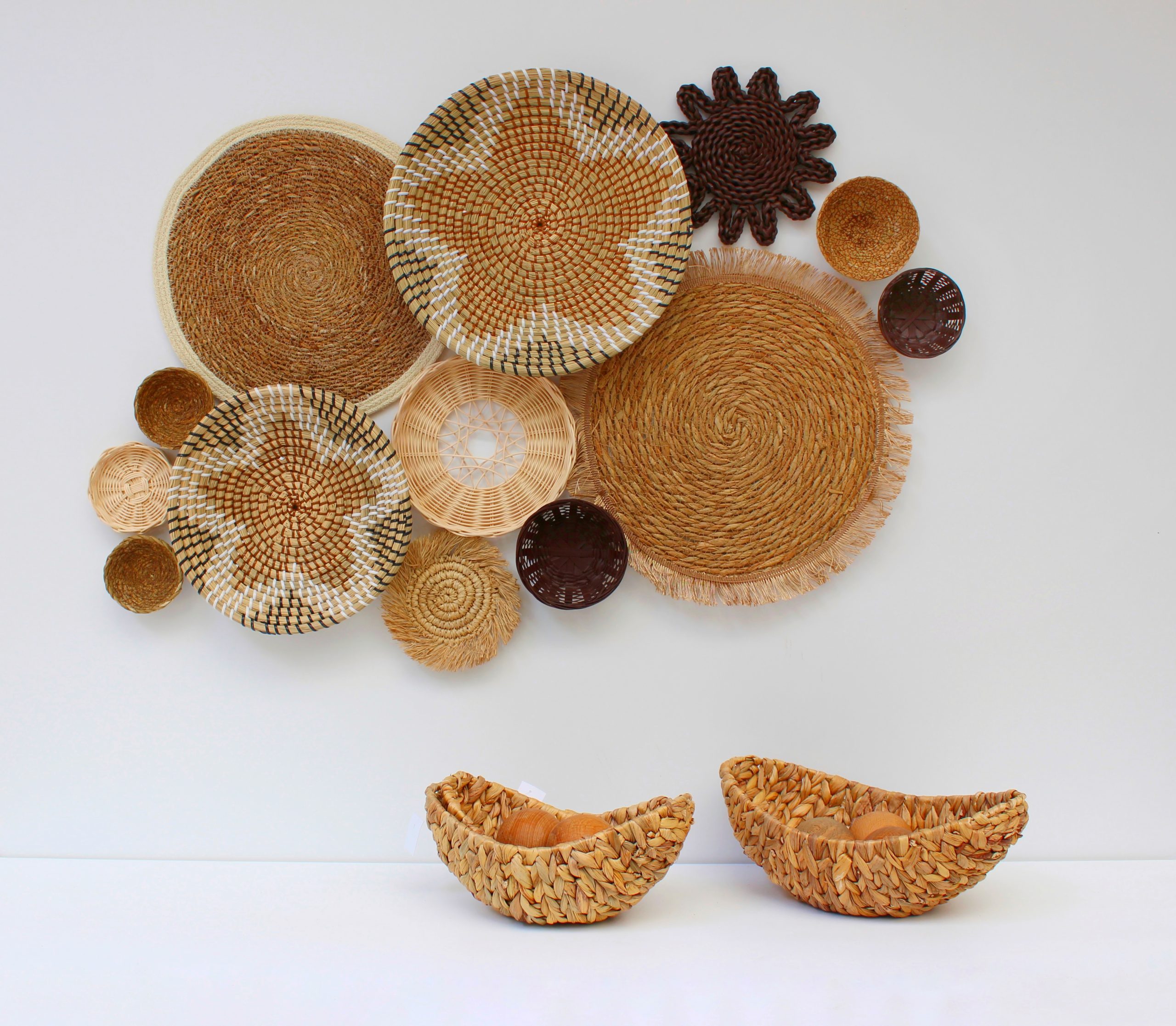 Ürün, doğal malzemeler ( hasır, rattan vb.) kullanılarak üretilmiş farklı boyut ve desenlerdeki sepetlerin bir araya getirilmesiyle oluşturulmuştur. Modern ve bohem tarzlarda ev dekorasyonu için oldukça şık ve dikkat çekici bir parçadır. Set 13 parçadan oluşmaktadır. Ürünler ayrı ayrı gelmekte olup istediğiniz gibi dizayn edebilirisniz.