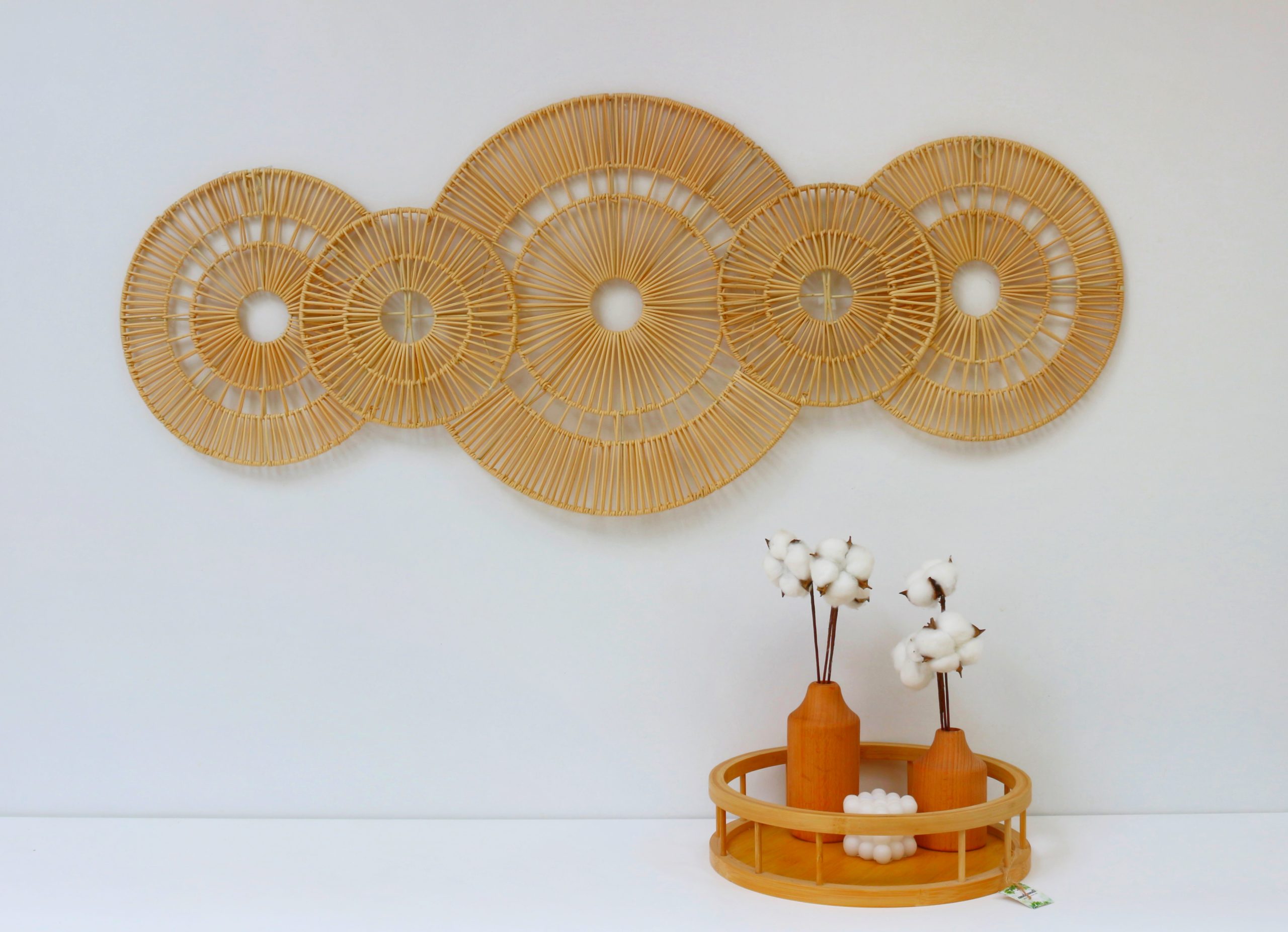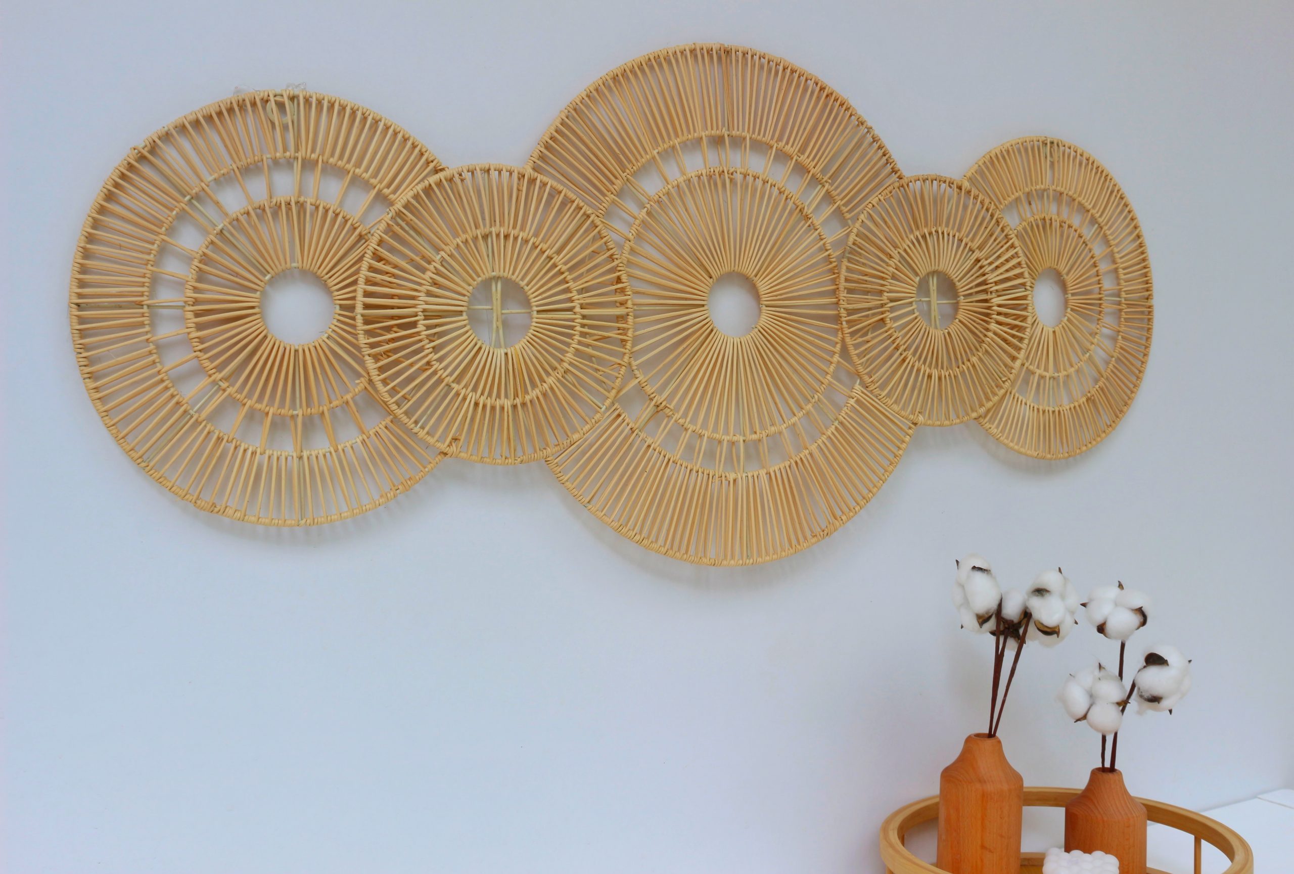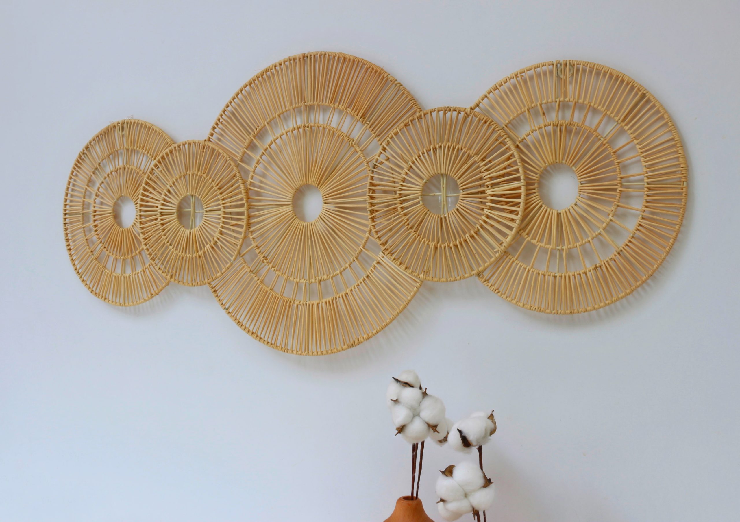 Rattan duvar dekoru tek parça halinde olup, farklı renkleri mevcuttur. Asma halkları ile duvara monte edebilirsiniz.